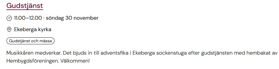 Adventsgudstjänst i Ekeberga Kyrka